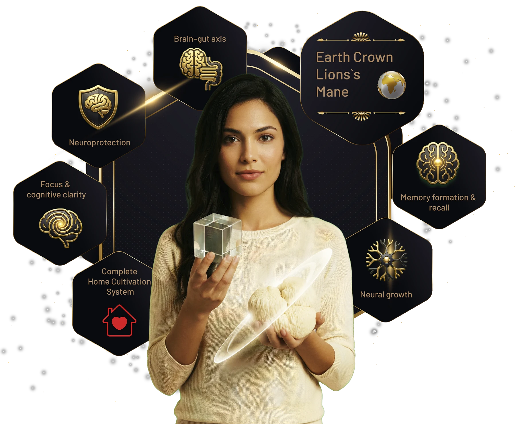 With Earth Crown you learn step by step how to cultivate Lion’s Mane at home, working with live liquid culture and a structured digital course supported by our AI Mentor. The program explains how this species grows, how environment shapes structure, and how to guide development through each stage.